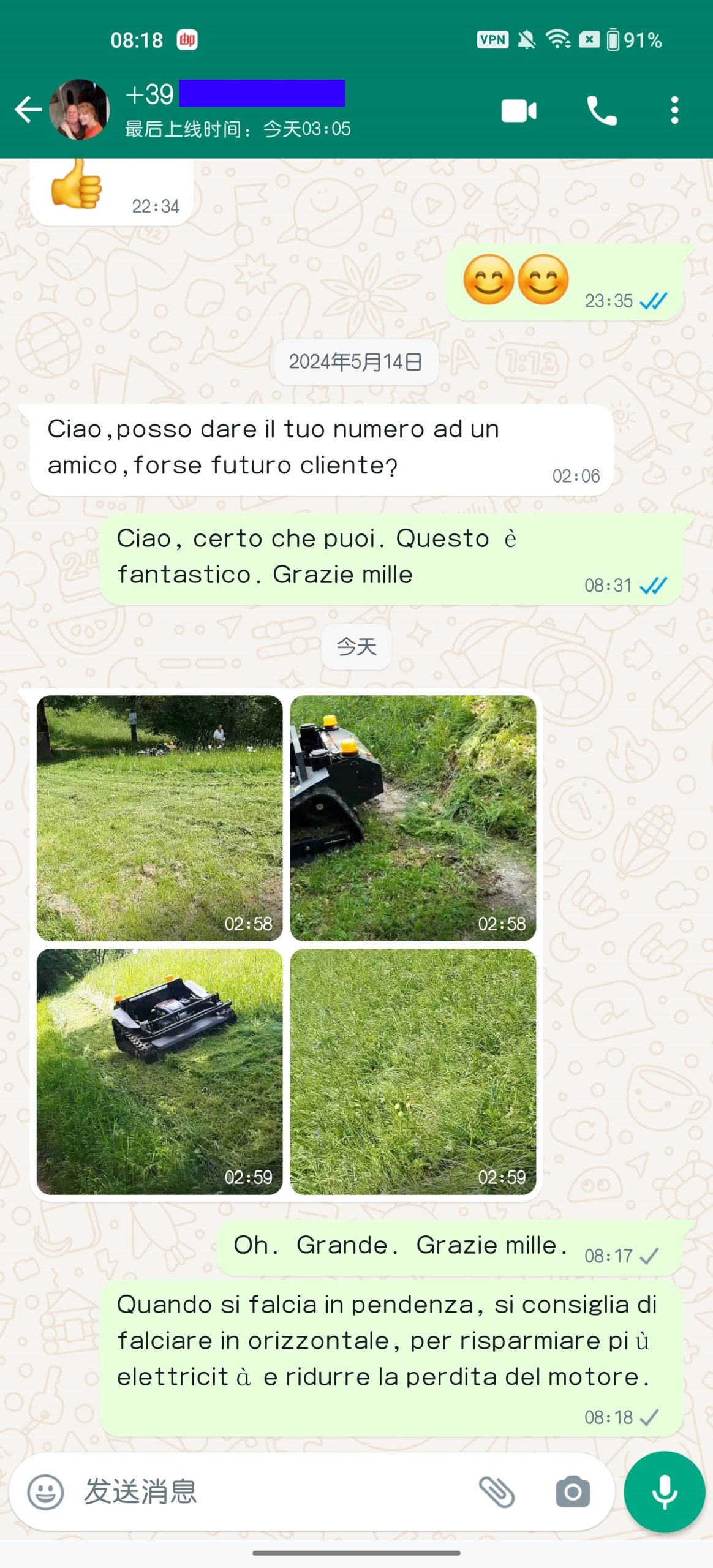 Recently, we had the pleasure of serving one of our esteemed customers, Faustini Paolo from Italy. He was on the hunt for a lawn mower that could tackle the treacherous inclines of his property, and our JT800 caught his eye. After purchasing our product, Paolo was kind enough to share four short videos showcasing his satisfaction with our lawn mower in action.