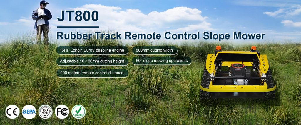You can see that our different mower models are recommended for use in different environments. First, they are divided into 9HP/16HP. 9HP (JT550S / JT550) is more suitable for small areas with slopes below 30 degrees. 16HP (JT800/JTM800) is more suitable for mowing on slopes with higher slopes (up to 60 degrees) in large areas.