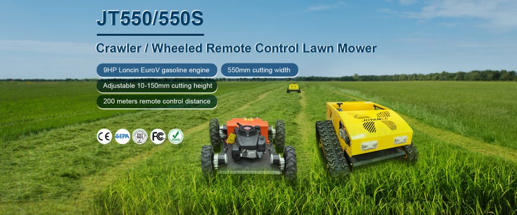 Wheeled mowers (JT550S) are more suitable for dry land, but not for wet and muddy land, which is easy to slip and sink. Other crawler mowers can be used in various complex terrains, both dry and wet.