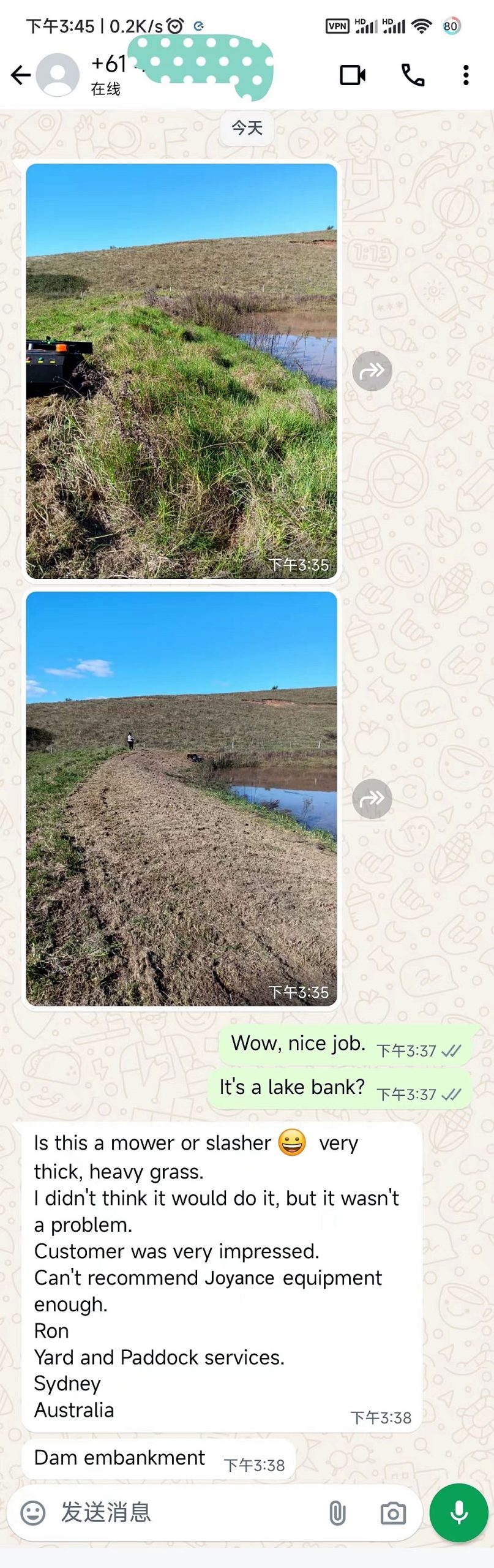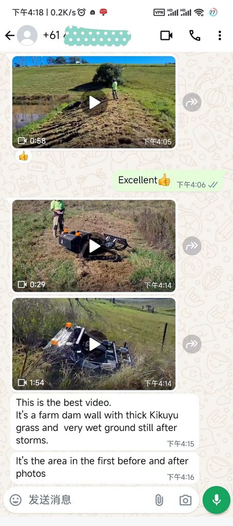 One satisfied Australian customer shared their impressive experience with us. They were initially unsure if the JT800 could handle their farm dam wall covered in thick Kikuyl grass, especially considering the very wet ground after recent storms. However, they were pleasantly surprised to find that it handled the task without a hitch. The result? The area transformed from a wild tangle to a neatly mowed space, ready for new growth to flourish. This means fresher food for livestock and increased yields for farmers—a win-win situation!