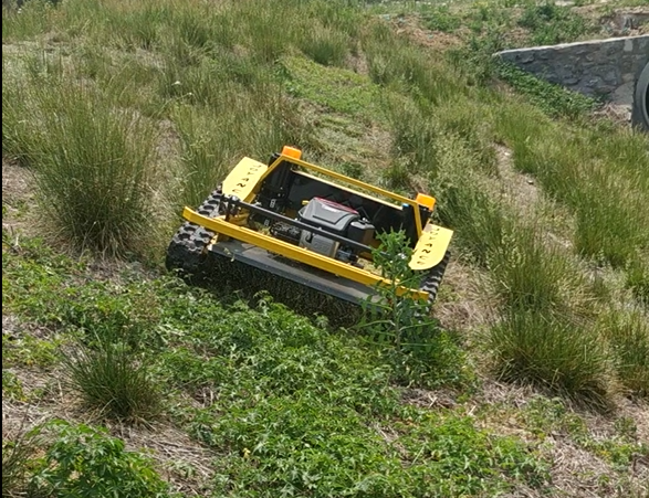 Our remote-controlled lawnmower allows for safe operation on hazardous slopes by enabling remote control functionality.